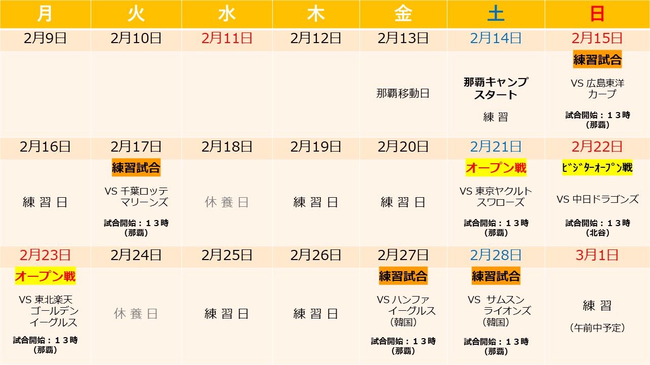■ 2月21日(土 ) 13時PB : vs 東京ヤクルトスワローズ(沖縄セルラースタジアム那覇)