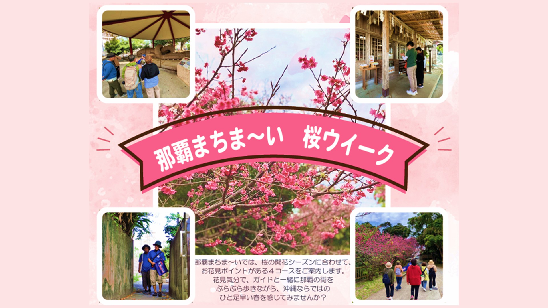 地元ガイドがまちの魅力を解説しながら散策する『ガイドと歩く 那覇まちま~い』では、桜の開花シーズンにあわせて『桜ウィーク』と題し、4つのコースで桜スポットをご案内いたします。