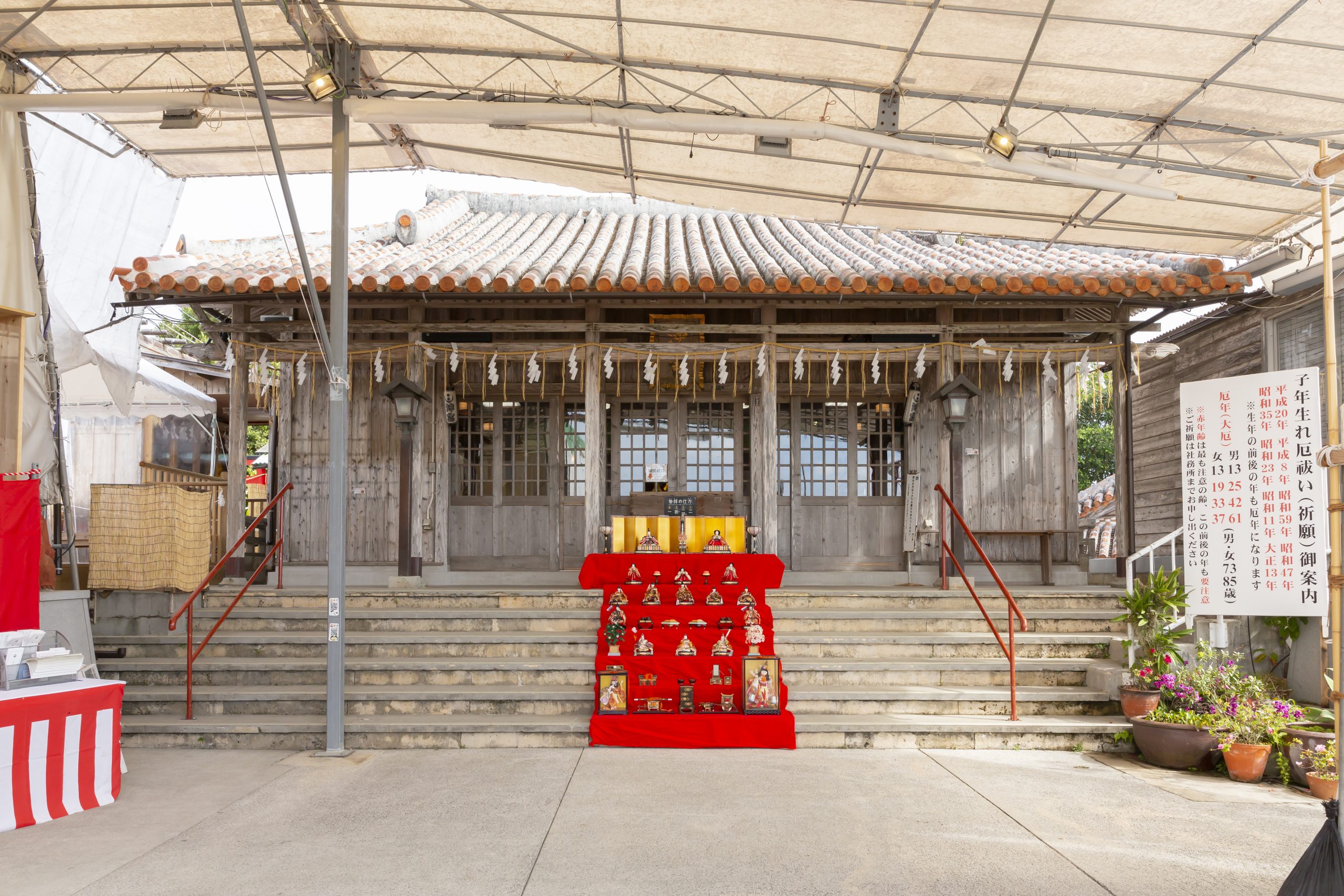 琉球王府から厚く保護された琉球八社のひとつで、創建は1451年という記録が残されています。奥武山公園内にあり、同じ敷地内にはプロ野球キャンプが行われる「沖縄セルラースタジアム那覇」があることから、多くの選手たちが参拝する神社としても知られています。